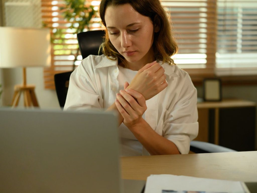For instance, slumping your shoulders or hunching over can compress nerves in your neck and back. As a result, you might experience sensations like tingling or numbness.